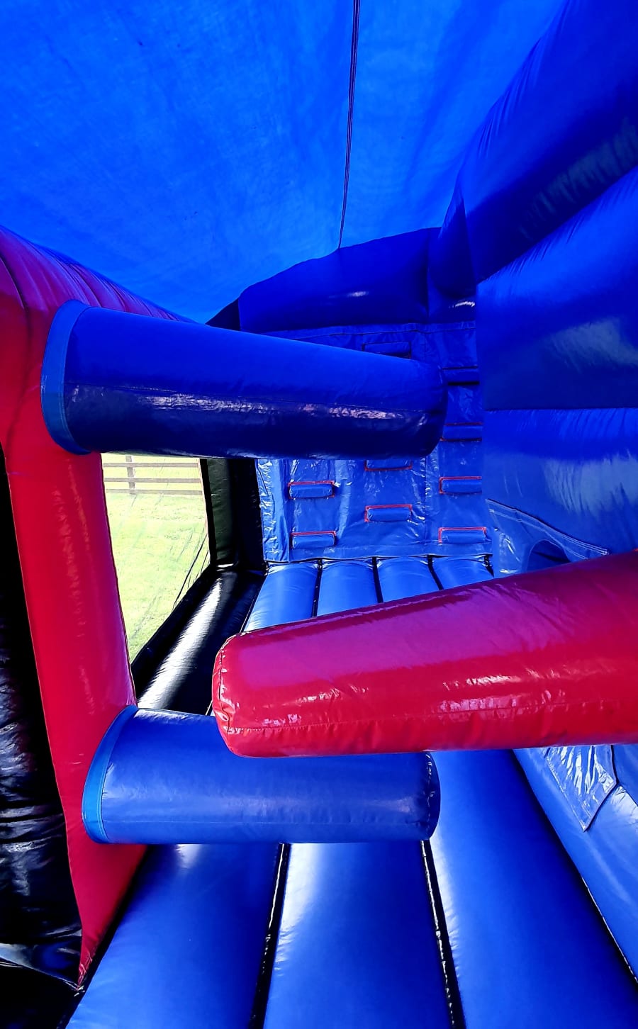 Slides, climbing walls, bish bash, climb through and more, this obstacle course has it all. Its entrance and exit is on the front of the inflatable making it easy to supervise.This inflatable is available to hire throughout county Durham including Durham city, Darlington, Barnard castle, Stanhope and towns surrounding these areas.