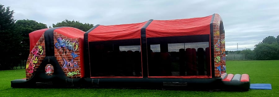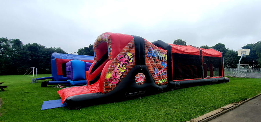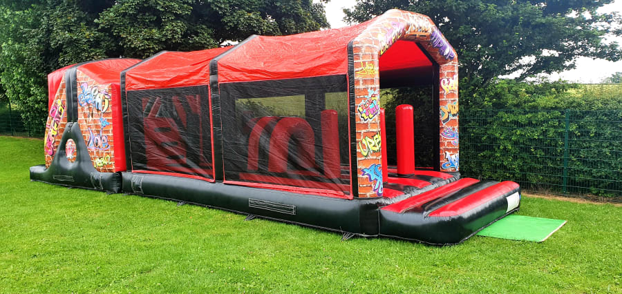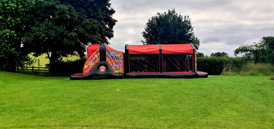 Tackle your way through our stunning graffiti style assault course. It has plenty of bish bash obstacles and tunnels at the front and a slippery slide at the end to finish it off.