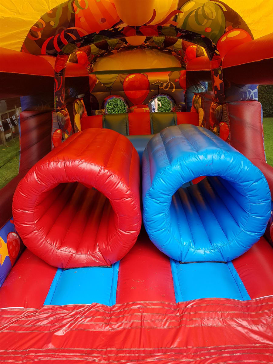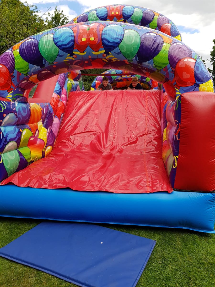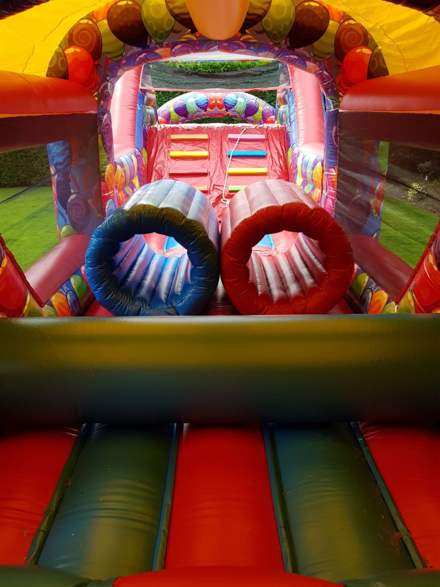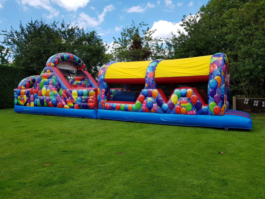 Introducing our vibrant and action-packed 50ft Party Assault Course! 🎉 Perfect for children's parties or events, this colorful inflatable features tunnels, bish bash elements, and an exciting slide, spanning an impressive 50ft in length.