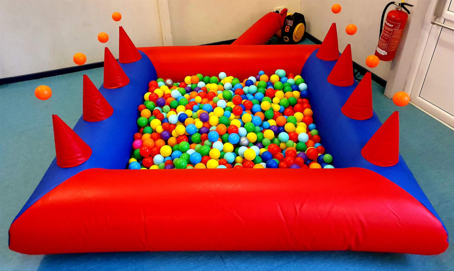 Our 8ft x 8ft ball pool is a great little item to hire for any occasion with it having a neutral partytime theme and neutral colours. To make this inflatable ball pool different it has eight ball jugglers which make the balls float in mid air. The ball pit is filled with approximately 1000 multicolours balls...... 1000 balls OMG 😊.