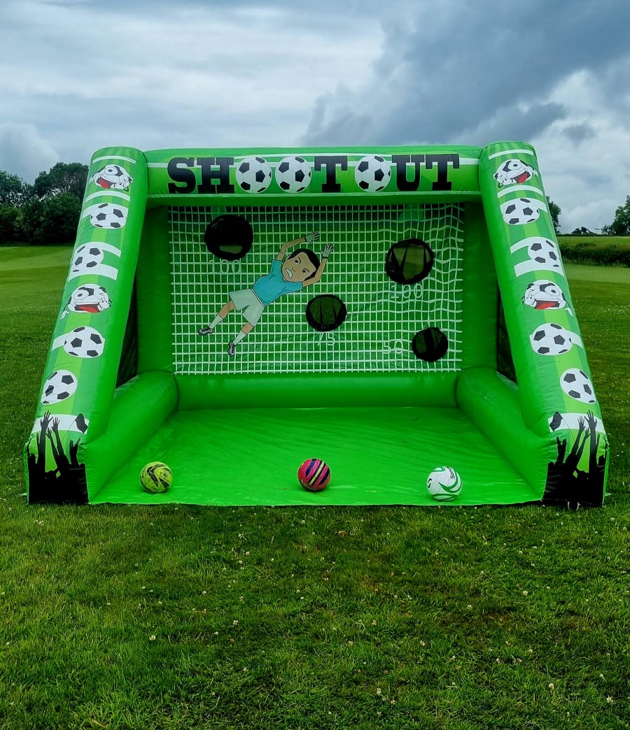 This Penalty shootout game comes with three footballs that must be returned once the hire is finished. Any missing footballs will need to be replaced by the person who has hired the inflateable.